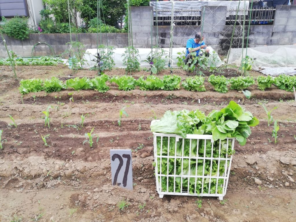 リーフレタス・玉レタス経過観察 公開日:2022年5月17日 1.体験農園各種野菜園芸 4月8日 植え付け 4月8日植え付け 4月27日 5月5日 5月15日 5月15日 リーフレタス・玉レタスとも外葉を2~3枚ずつ収穫 ⇒ボール山盛り2杯になりました。(しゃきしゃきレタスのしゃぶしゃぶ美味しかった) 5月20日 リーフレタス・玉レタスとも外葉を2~3枚ずつ収穫 ⇒かごいっぱいになりました。(じゃこレタスサラダとお友達へおすそ分け)5月26日 リーフレタス・玉レタスとも外葉を2~3枚ずつ収穫 ⇒かごいっぱいになりました。 かごいっぱいのレタス タグ リーフレタス 玉レタス 投稿ナビゲーション 落花生・シソ・スナップエンドウの播種(2022年5月16日)大根経過観察