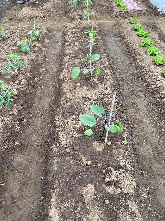 ナス経過観察 公開日:2022年5月17日 1.体験農園各種野菜園芸 4月22日 苗の植え付け 5月6日 仮支柱から長めの支柱へ ★整枝方法3本仕立てとする。1番花のなり口があるのが主枝①、そのすぐ下の枝が主枝②、その下の枝が主枝③となり、その3本を残し、その下の芽はかきとる。 5月26日 支柱への紐のしばりなおし※小さなナスが出来始めています。 タグ ナス 投稿ナビゲーション 大根経過観察キュウリ経過観察
