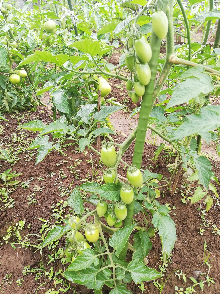 先日わき芽として抜いたものを土にさしておいたら、花が咲き小さな実がついていました。ここからも収穫できたら感動です。