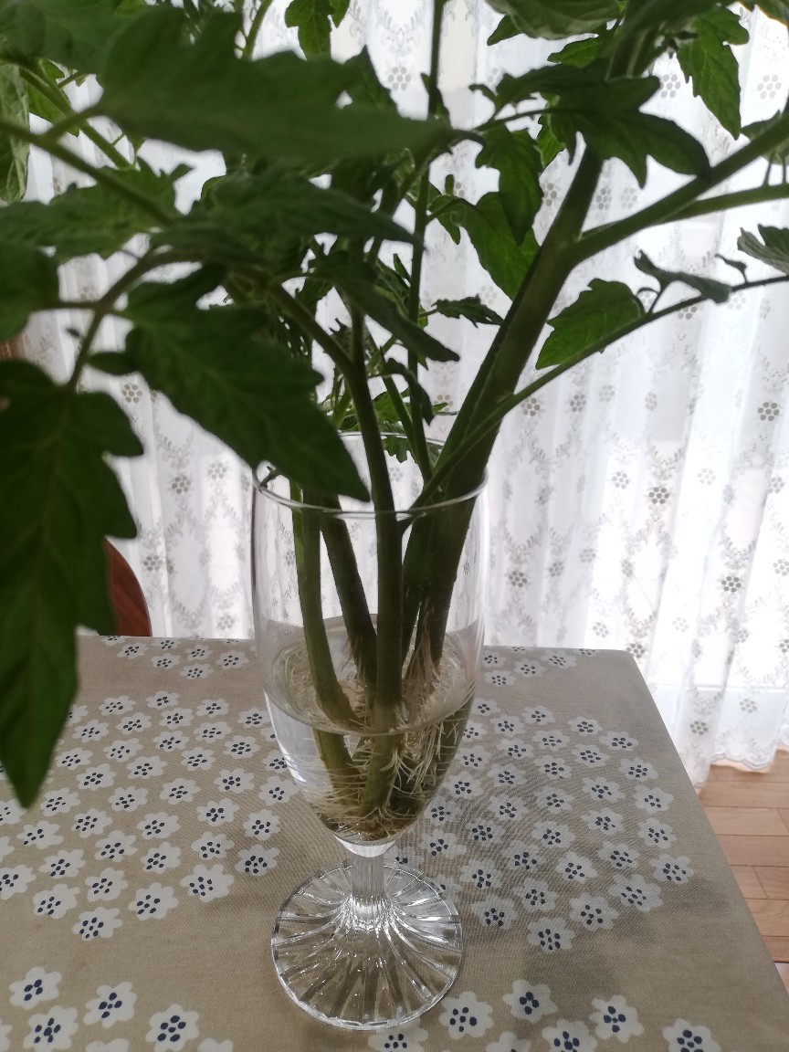 6月初旬に取り漏れていた株元部分のわき芽を摘み、コップにさしていたところ十分発根していたので自宅花壇に2本定植しました。異なる場所に植えたのですが、どちらも日当たりはあまりよくないのできちんと収穫できるまで育つかわかりませんが、面倒みていきたいと思います。収穫できればラッキーと思って日々見守ります。