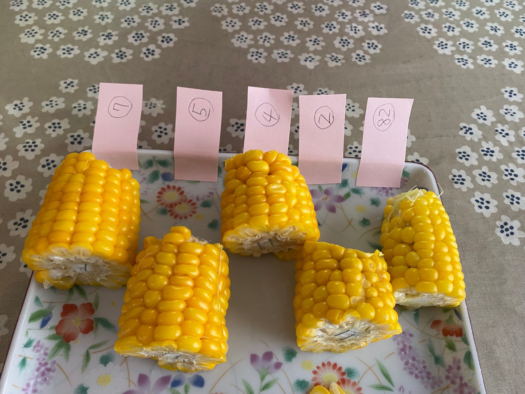 ④についてはリュウさんが思わず「トウモロコシを初めて食べる人がこれだったらトウモロコシ嫌いになっちゃうね」というほどのもので、全く甘みがなく驚きました。