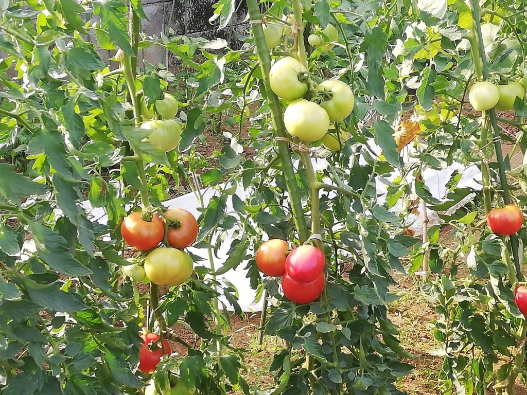 赤赤と成熟したトマトが遠目からもよく見えました。ただ、ちょっと触れただけでもげてしまったトマトもあったので落下は時間の問題だったかもしれません。トマトが土に落下しているのを発見すると悲しい気持ちになるので良かったです。