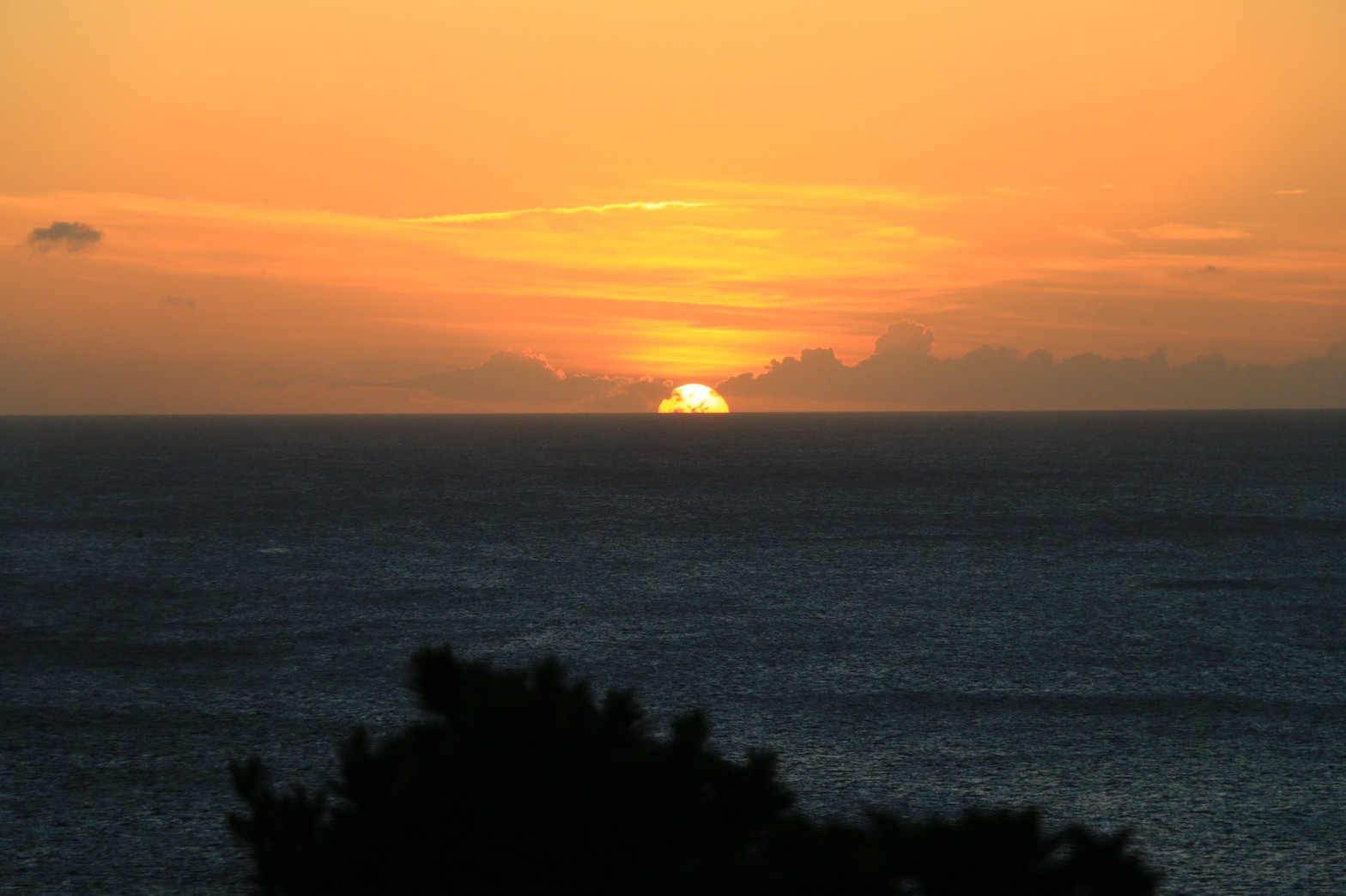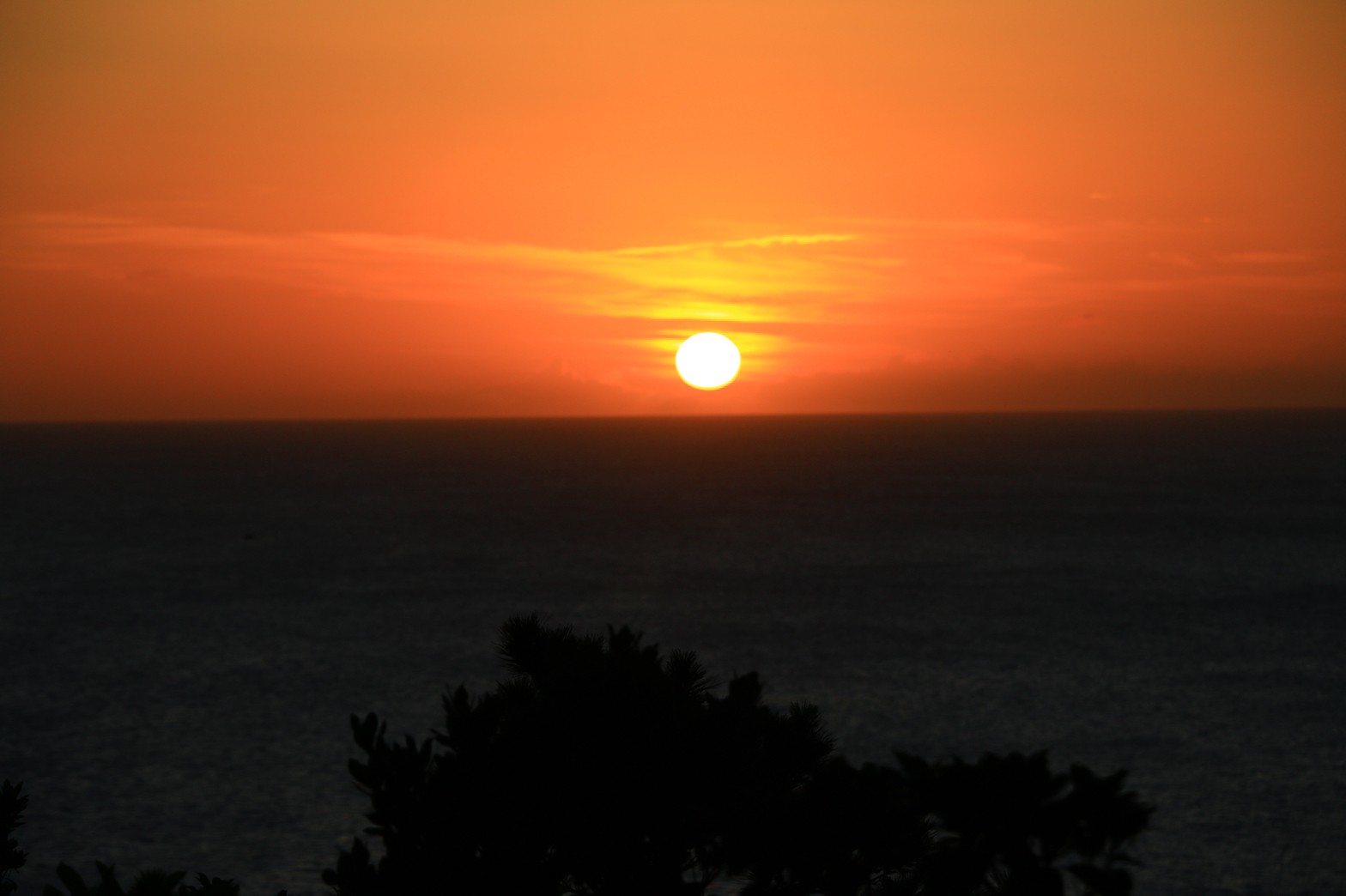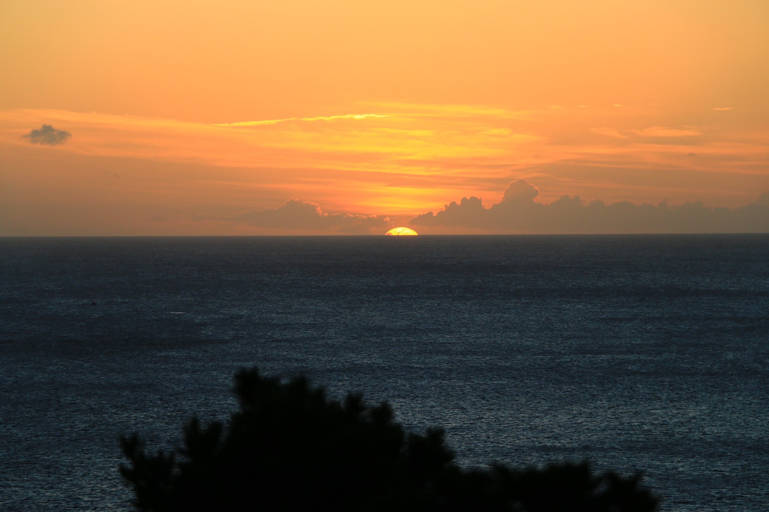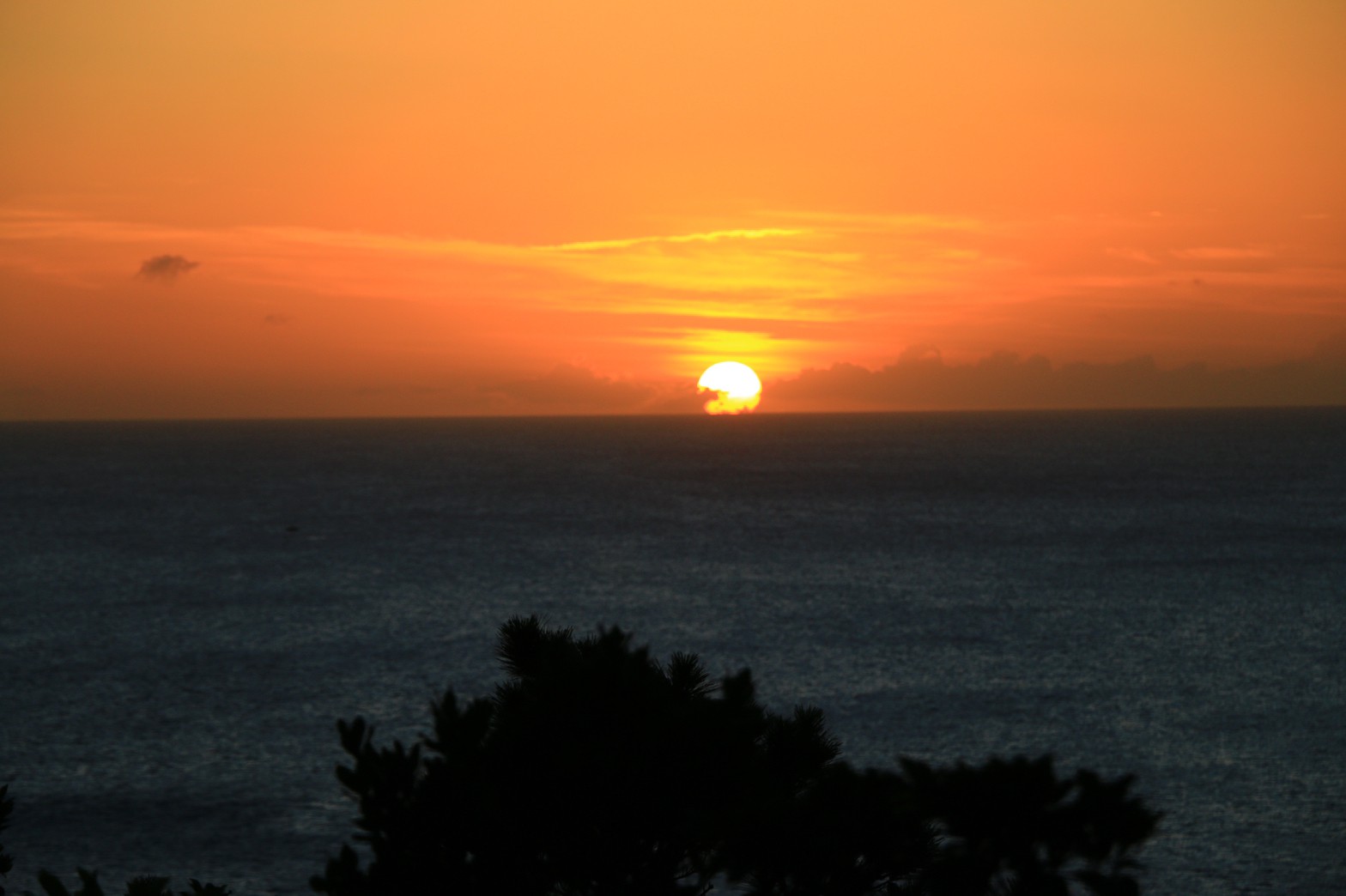 日の入りは19時27分でした。宿のご主人からは「夕日はだいたい雲の中に入っちゃうのよね~。今日はどうかな~?」と言われて行きましたが、海に沈む夕日がバッチリ見れました。展望台にいた人も1ヶ月半いるけど海に沈む夕日は初めて見たと言っていたので、それほど珍しいことのようです。