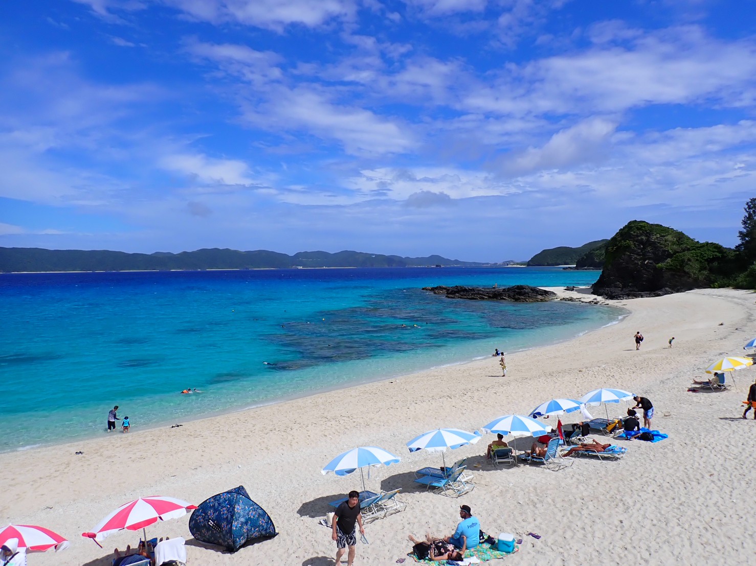 他と比べても群を抜いて透明度が高くシュノーケリングが楽しめるビーチだと聞いて訪れてみましたが、残念ながらここ数年珊瑚礁が激減してしまい、珊瑚礁保護のため遊泳エリアが厳しく制限されその一部しか見ることができませんでした。実際に泳いで見ると珊瑚礁の上にフィンで立つ人や珊瑚礁をつかむ若者の姿も見受けられこれでは致し方なしという感じでした。実に悲しい光景です。ただそれなりに透明度も高く、エリアは限られますが珊瑚礁及びカラフルなお魚を楽しめました。この日は雨が降ったりもしましたが、晴れた時には海に光が差込みケラマブルーを実感できました。