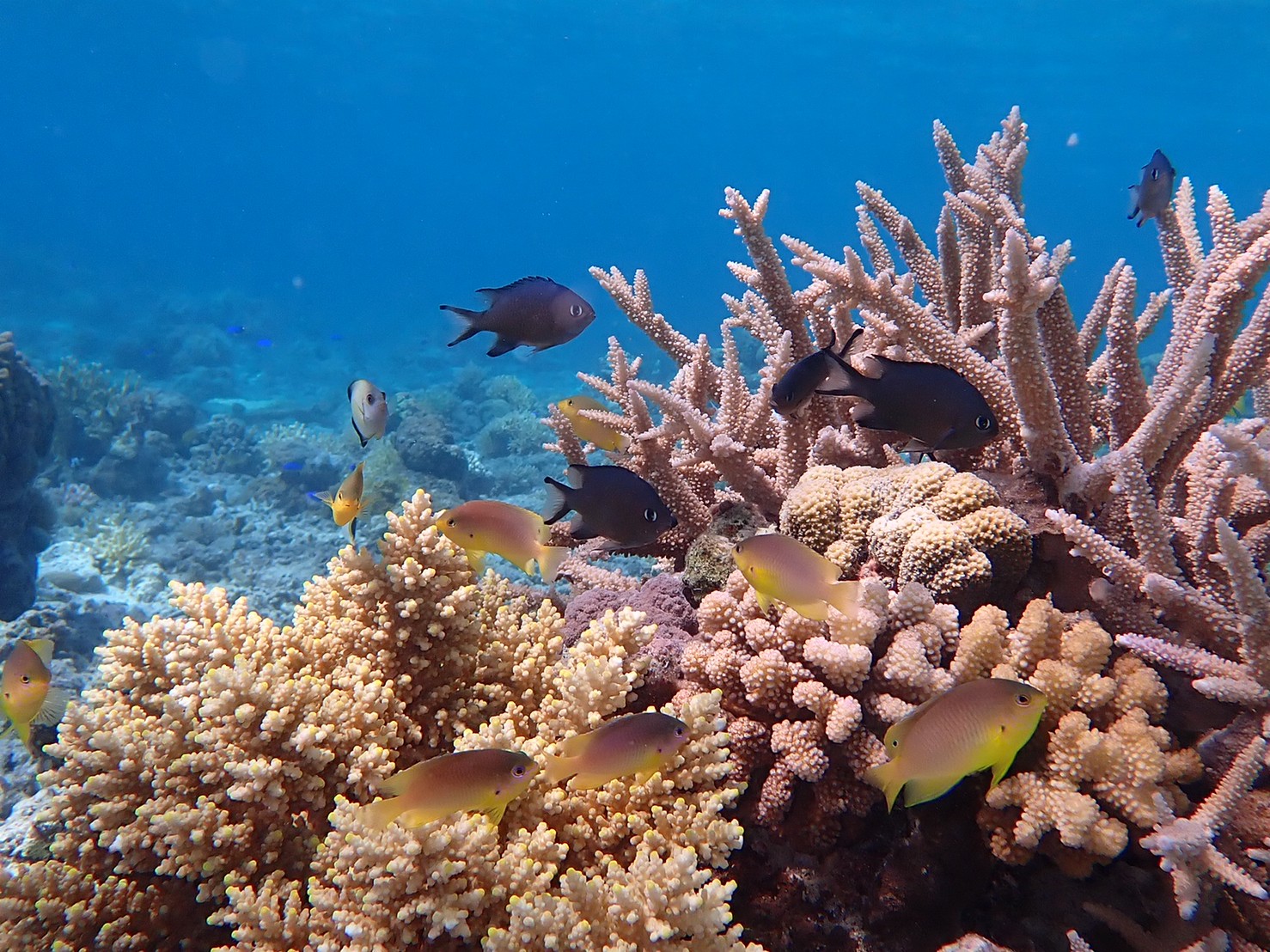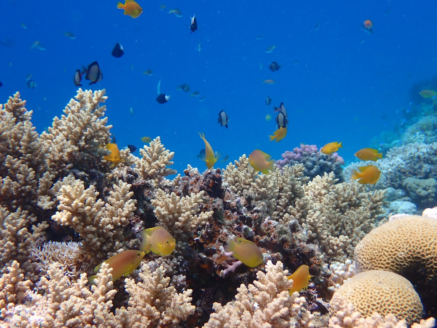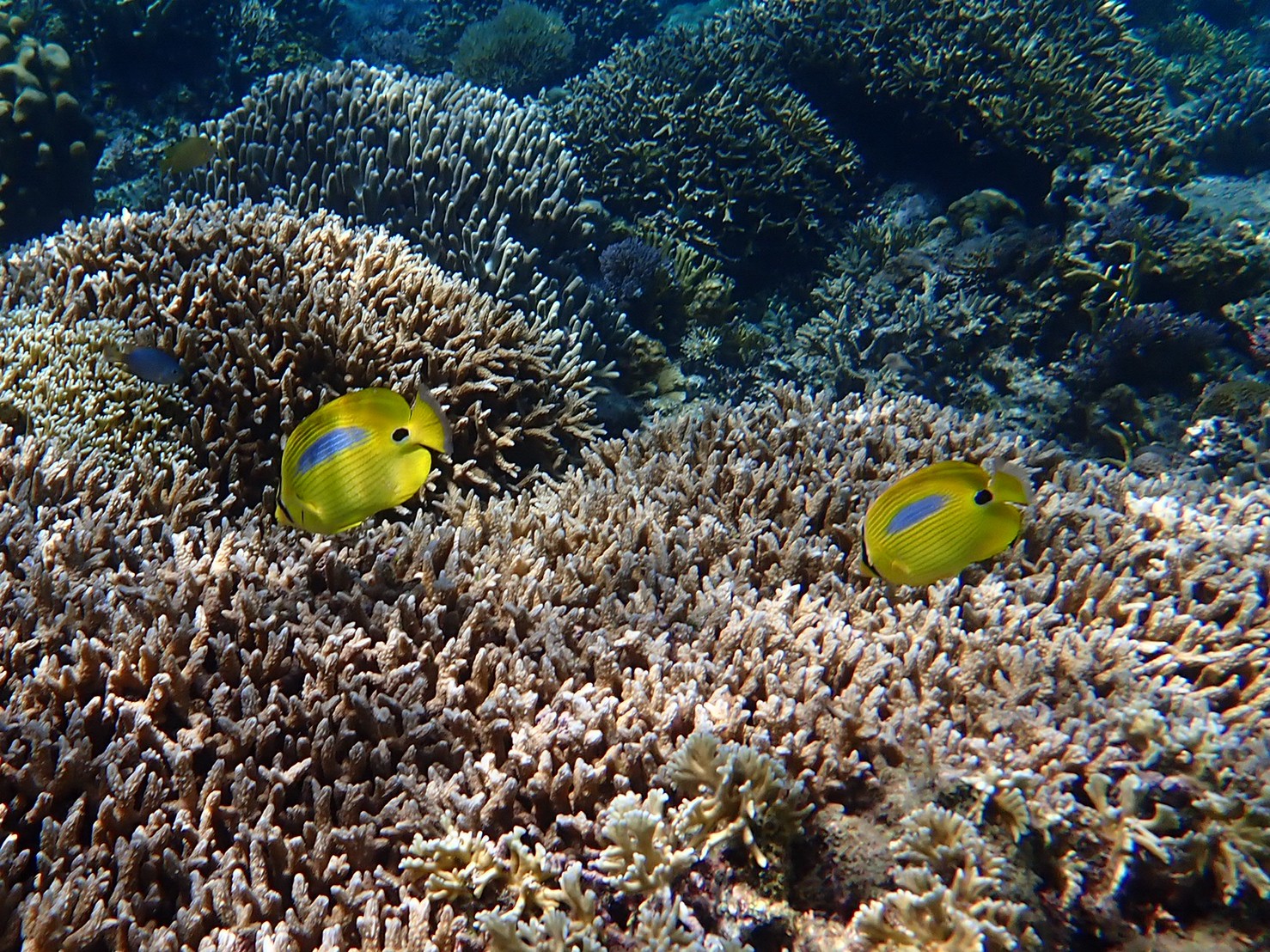 潮の流れの関係でこの日は午後からしか潜れないとのことでしたが、嘉比島に比べると風も穏やかで過ごしやすかったです。海岸から50m位泳ぐと「珊瑚の森」と呼ばれる最大の見せ場がありますが、水深も深くシュノーケルよりもダイビングの方に向いているスポットだなと感じました。いったん沖まで泳ぎその後は潮の流れに乗りながら海岸に向かいシュノーケルをするとほぼ力を使わずに綺麗な海を楽しめました。嘉比島に比べるとより透明度も高く珊瑚礁も色鮮やかに感じました。午後のおやつはミニ羊羹、これまた美味でした。