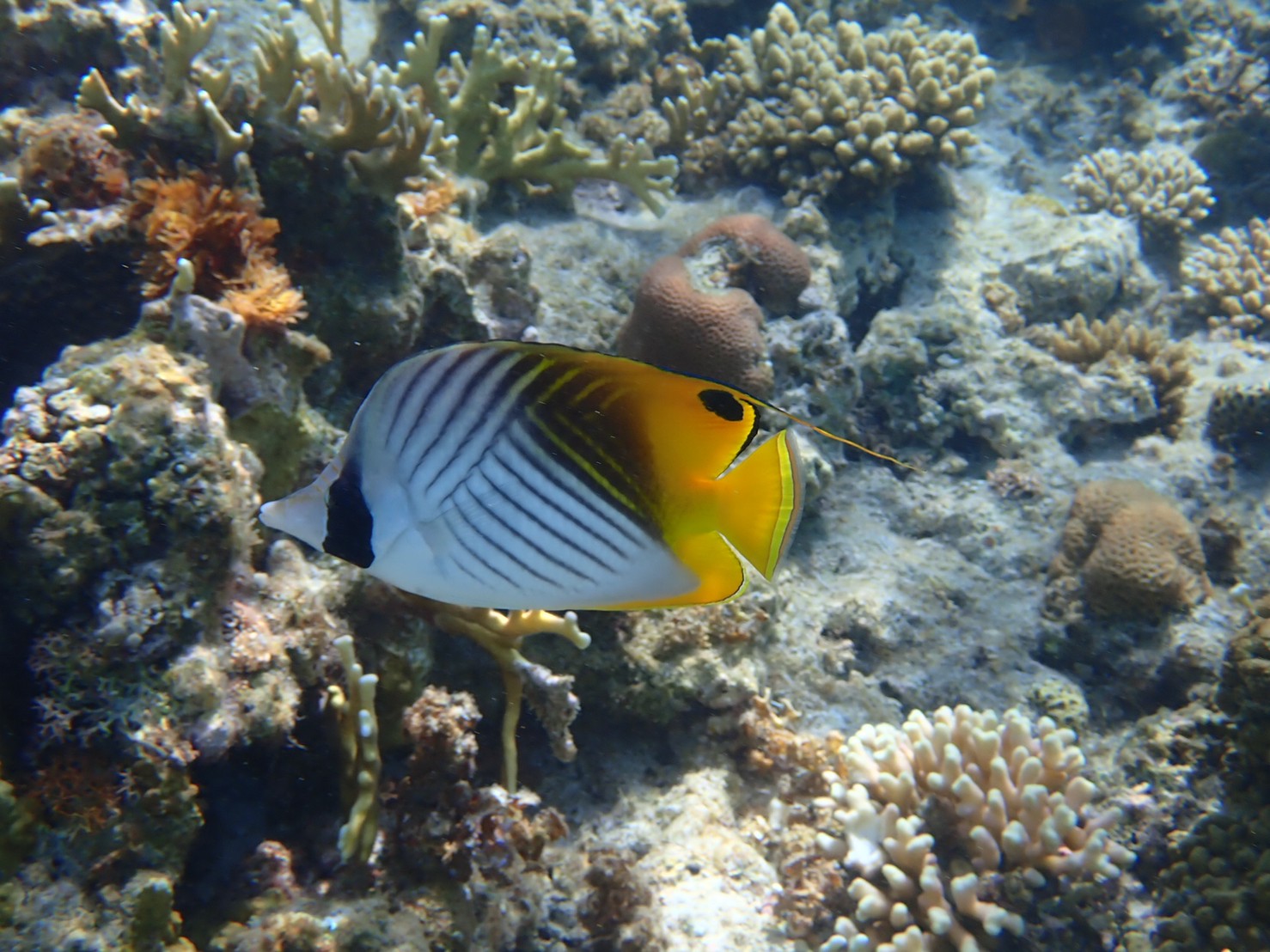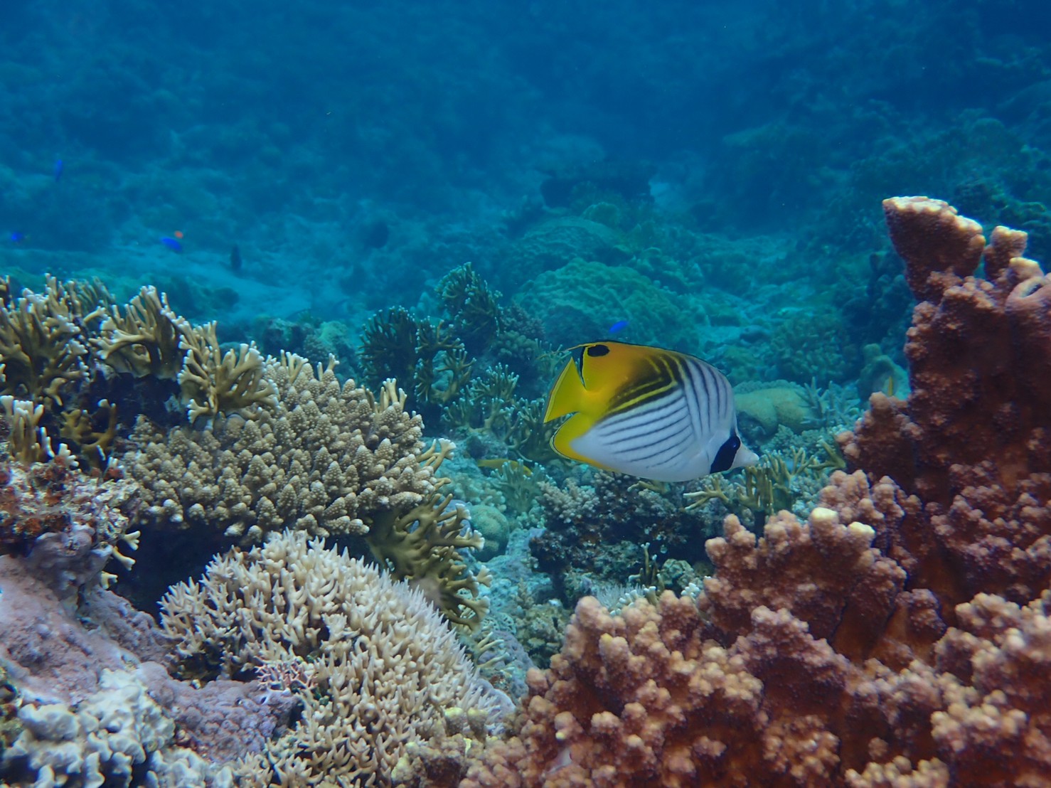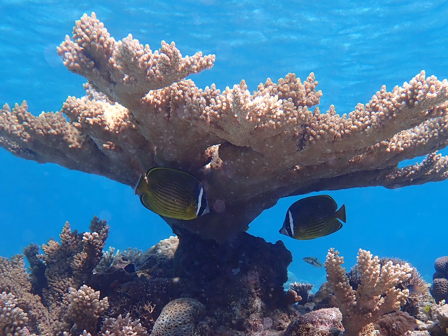 潮の流れの関係でこの日は午後からしか潜れないとのことでしたが、嘉比島に比べると風も穏やかで過ごしやすかったです。海岸から50m位泳ぐと「珊瑚の森」と呼ばれる最大の見せ場がありますが、水深も深くシュノーケルよりもダイビングの方に向いているスポットだなと感じました。いったん沖まで泳ぎその後は潮の流れに乗りながら海岸に向かいシュノーケルをするとほぼ力を使わずに綺麗な海を楽しめました。嘉比島に比べるとより透明度も高く珊瑚礁も色鮮やかに感じました。午後のおやつはミニ羊羹、これまた美味でした。