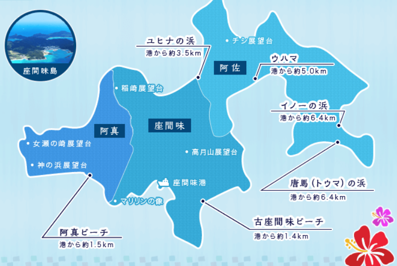 ⇒座間味港正面沖に位置する座間味島から一番近い島。