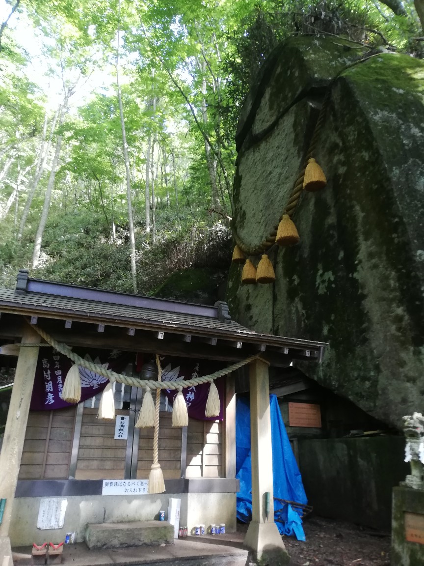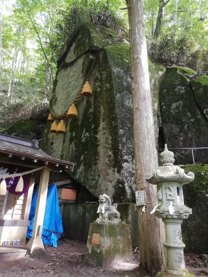 目に飛び込んでくるのは、大きなご神体の岩です。この岩の割れ目が石の漢字に見えることから、石割神社と呼ばれているそうです。岩の割れ目を時計回りに3回、願いを込めて回ると叶うと言われていますが、過去2回やっているので今回は省略しました。(岩の割れ目は狭くリュックがひっかかったりするので面倒だったというのが本音です)