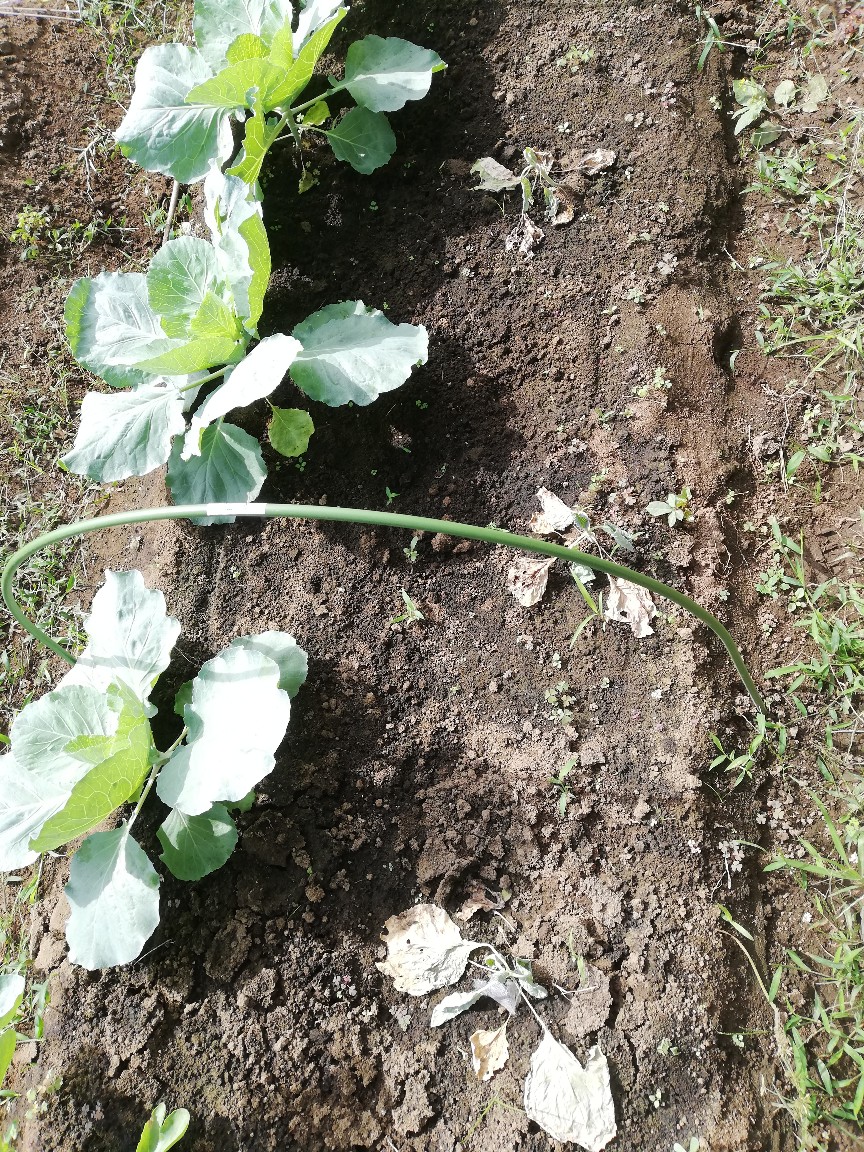 カリフラワー、ブロッコリーは元気ですが、キャベツのあやねは全滅していました。先輩Sさんに見てもらったところ根が伸びずに活着していない状況なので今後の見込みなしとのことでした。