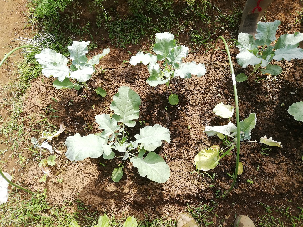 ④キャベツ、ブロッコリを植えた苗の確認
