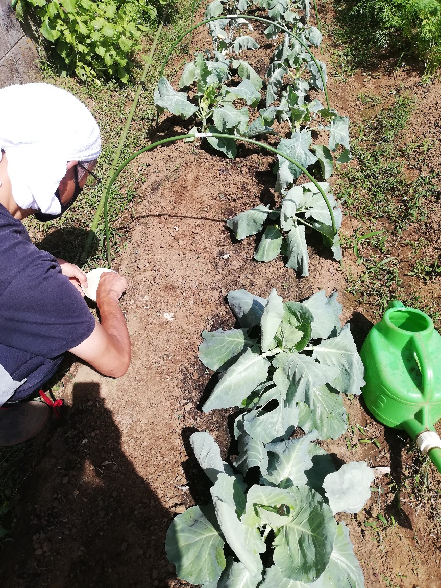この時期モンシロチョウの幼虫が多く出没しますので注意深く確認し見つけ次第除去しました。