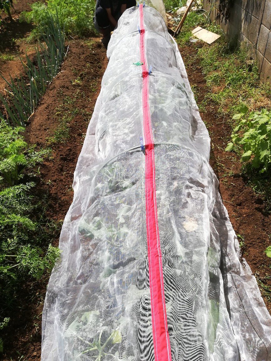 今日も作業はみっちり2時間、何だか充実感たっぷりです。防虫ネットのお披露目が嬉しかったです。