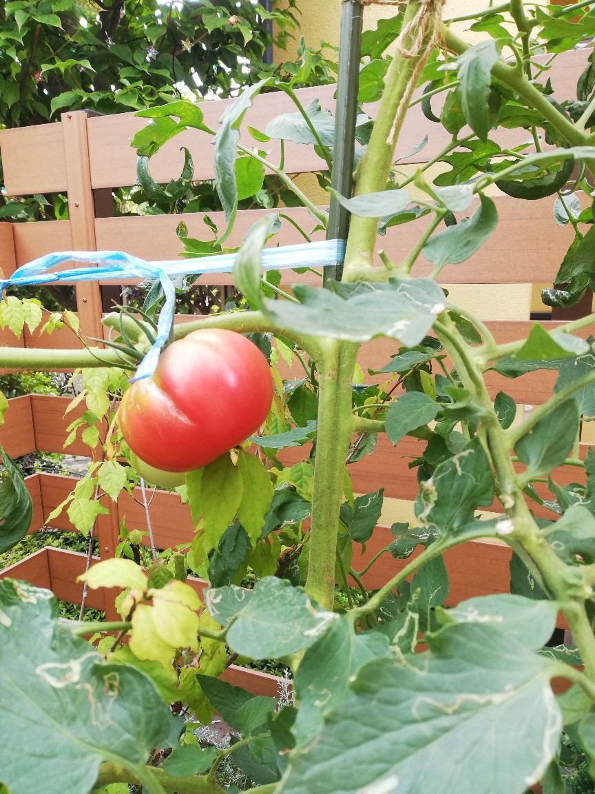 4/22に大玉トマト4苗、ミニトマト2苗を植え付けし、約2ヶ月後の6/20から収穫が始まり9/9まで楽しむことができました。大玉トマトは102ヶ(わき芽を持ち帰り自宅で育て収穫したトマト5ヶを含む)、ミニトマトは383ヶ収穫できました。さすが地植えです。地植えゆえの強さかな、とにかくわき芽がすごかったです。