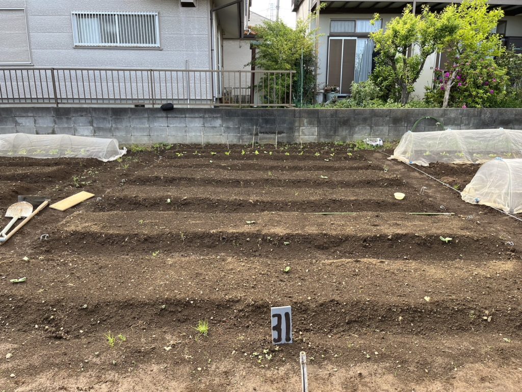 本日の畑作業(2023年4月16日) 公開日:2023年4月17日 1.体験農園各種野菜園芸 雨続きで金曜日・土曜日の講習が休みだったため、日曜日に振替となりました。私は別の用事があったためリュウさんが一人で畑に行って、大根・カブ・小松菜の種を蒔いてくれました。あらかじめ土をふかふかに耕していたのですぐに種まきできたようです。種まきはリュウさんが得意なので、私がいても役にたたなかったのでちょうど良かったかな。播種後は発芽促進のため不織布をかけました。リュウさん、一人でありがとう。 Before After タグ カブ 大根 小松菜 投稿ナビゲーション 本日の畑作業(2023年4月9日)本日の畑(2023年4月23日)