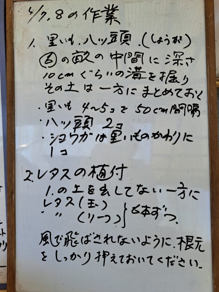 今年は2名しか(前年は7人)新しい生徒さんが入らなかったようで園主さんも若干気を抜いているかのようなホワイトボードになっています。