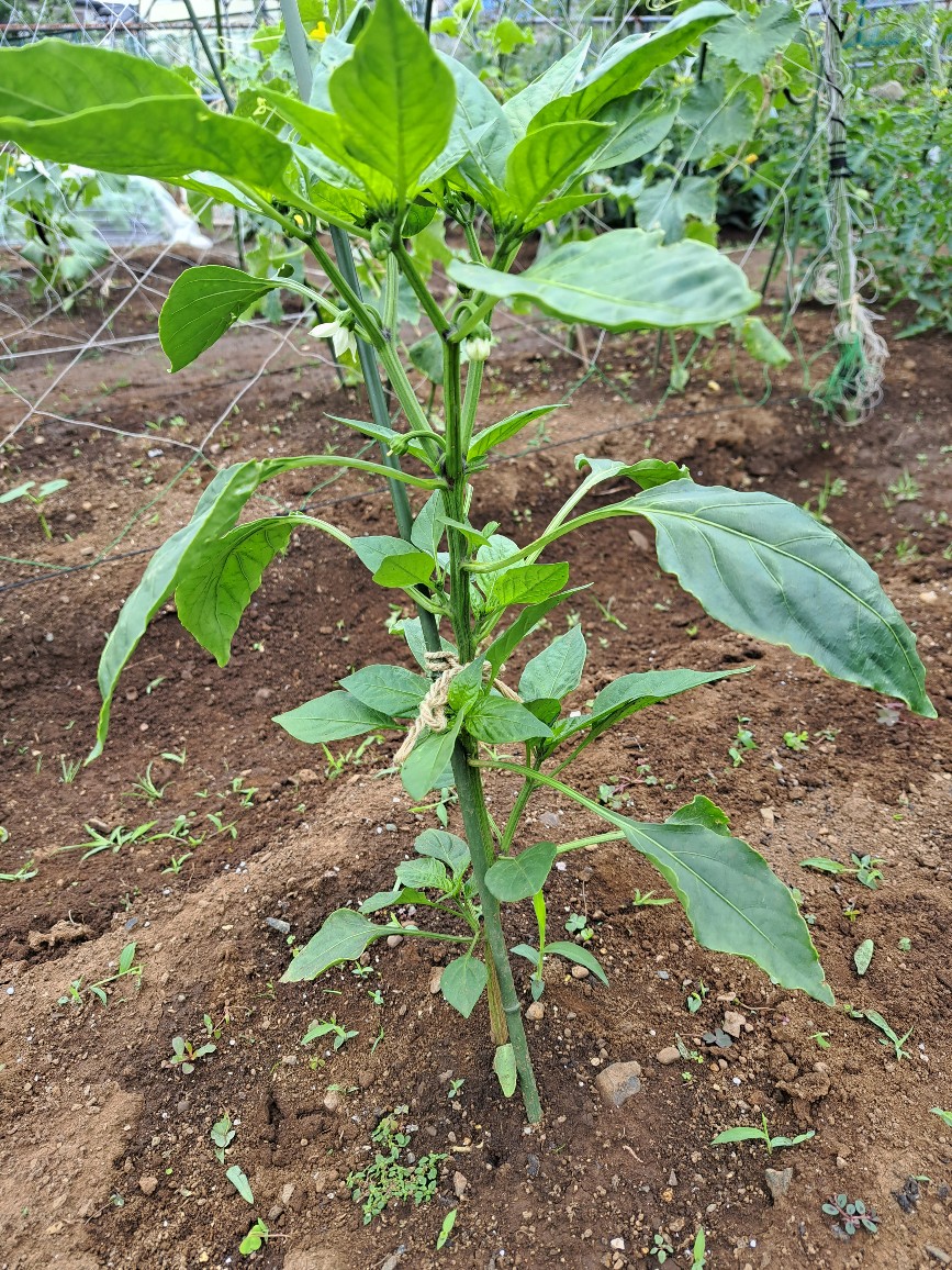 ※前回リュウさんが脇芽と間違って主軸をとってしまったトマトについては、土際から1本大きな側芽が出てきたのでそれを残して主軸の代わりにすることにしました。