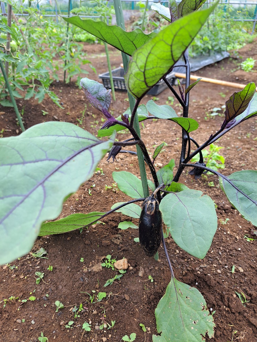ナスはまだ小さかったのですが、土スレスレに出来ていたので早めに収穫しました。