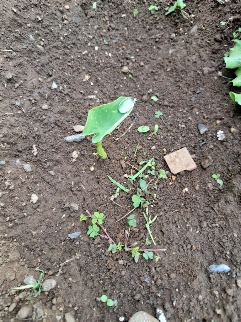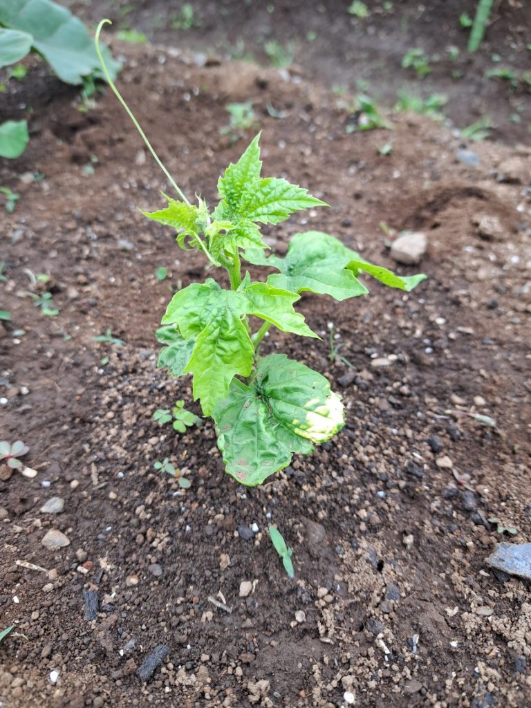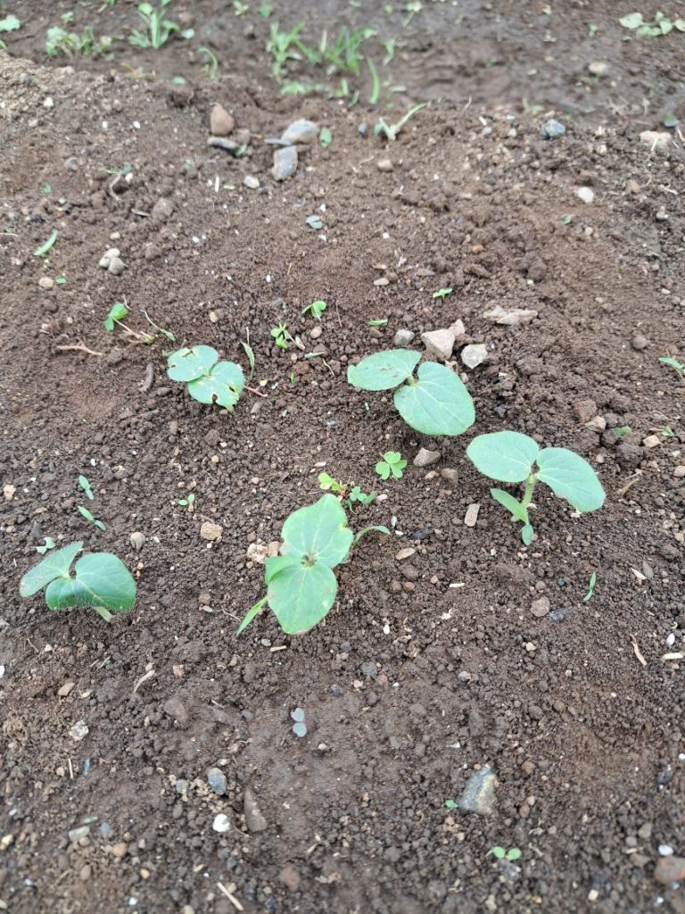 ・ズッキーニ:昨年度の残骸からの発芽苗ですが少しずつ大きくなっています