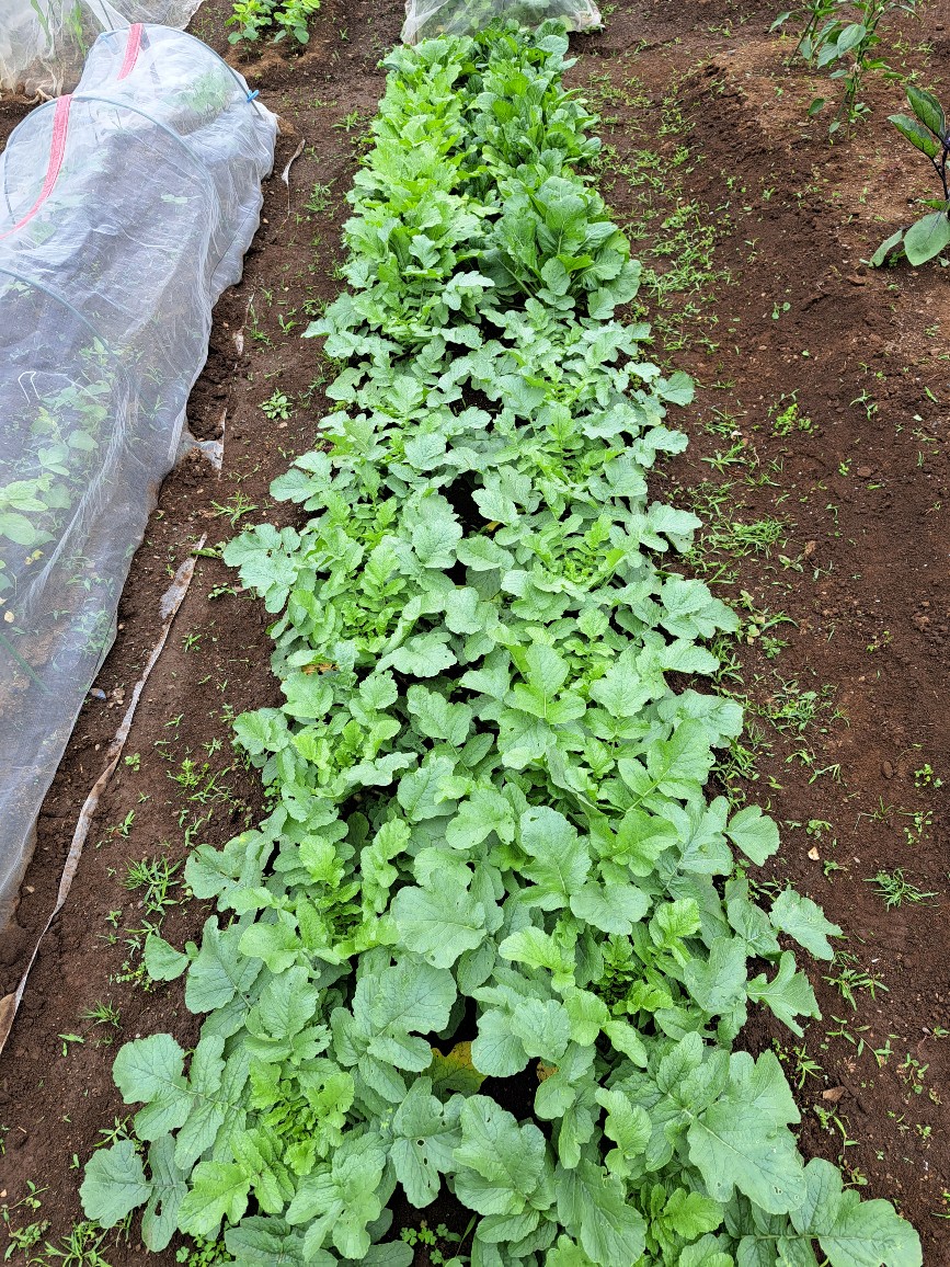 ・大根、小松菜、カブ:順調過ぎるほど順調ですが、チラホラ虫食いあとが気になります