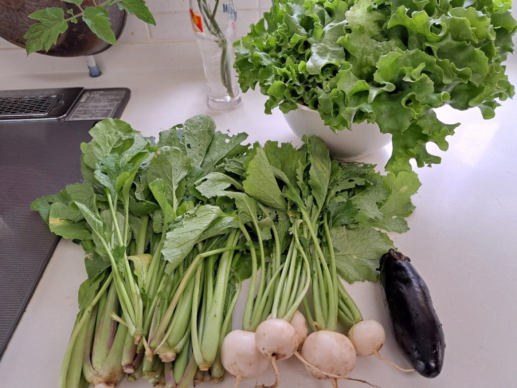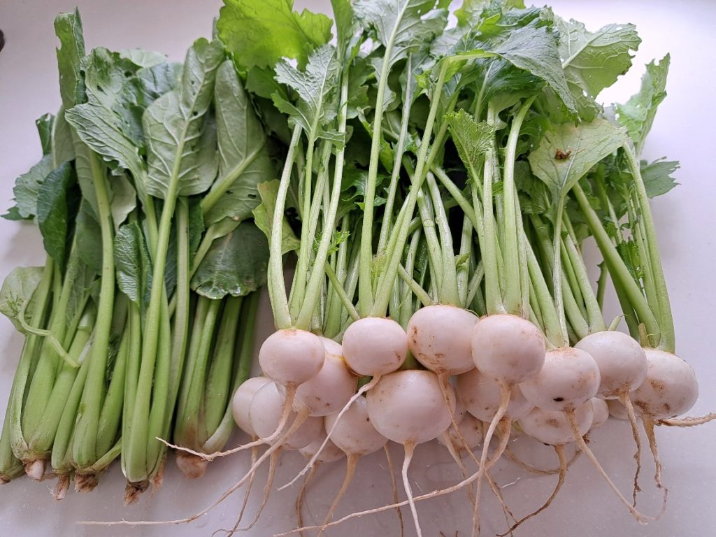 これらのカブは間引きするために引き抜いたものですが、それなりの大きさになっており生で味噌をつけて食べたらとても美味しかったです。