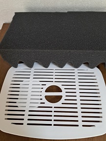 種をセットするスポンジはプランターにもともとついていた台座(1.5cm程度底上げされている台)の大きさにあわせてカットし、切り込みをいくつかいれました。