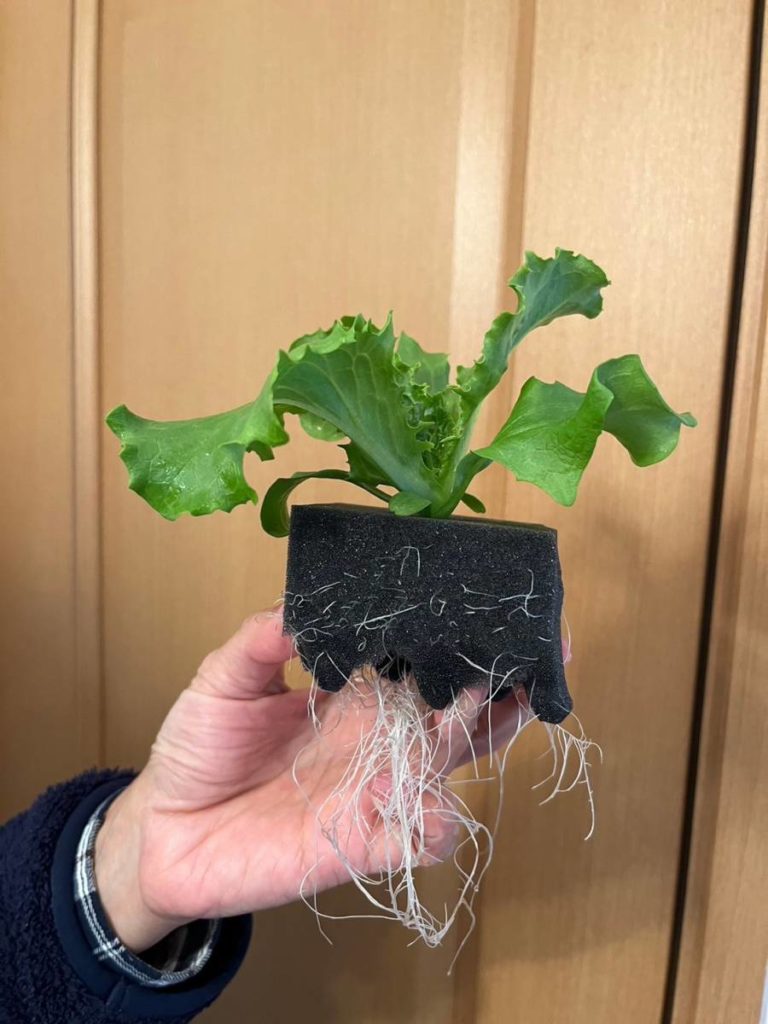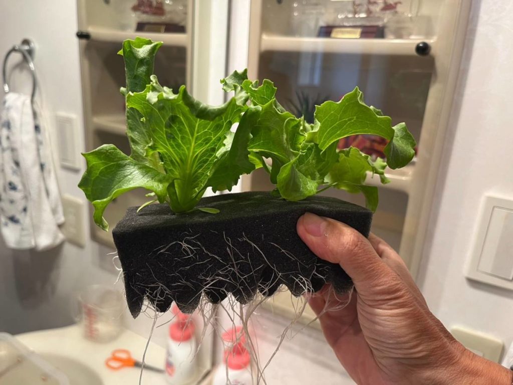 スポンジを持ち上げて見ると・・・下からも横からも根がびっしり生えてます。