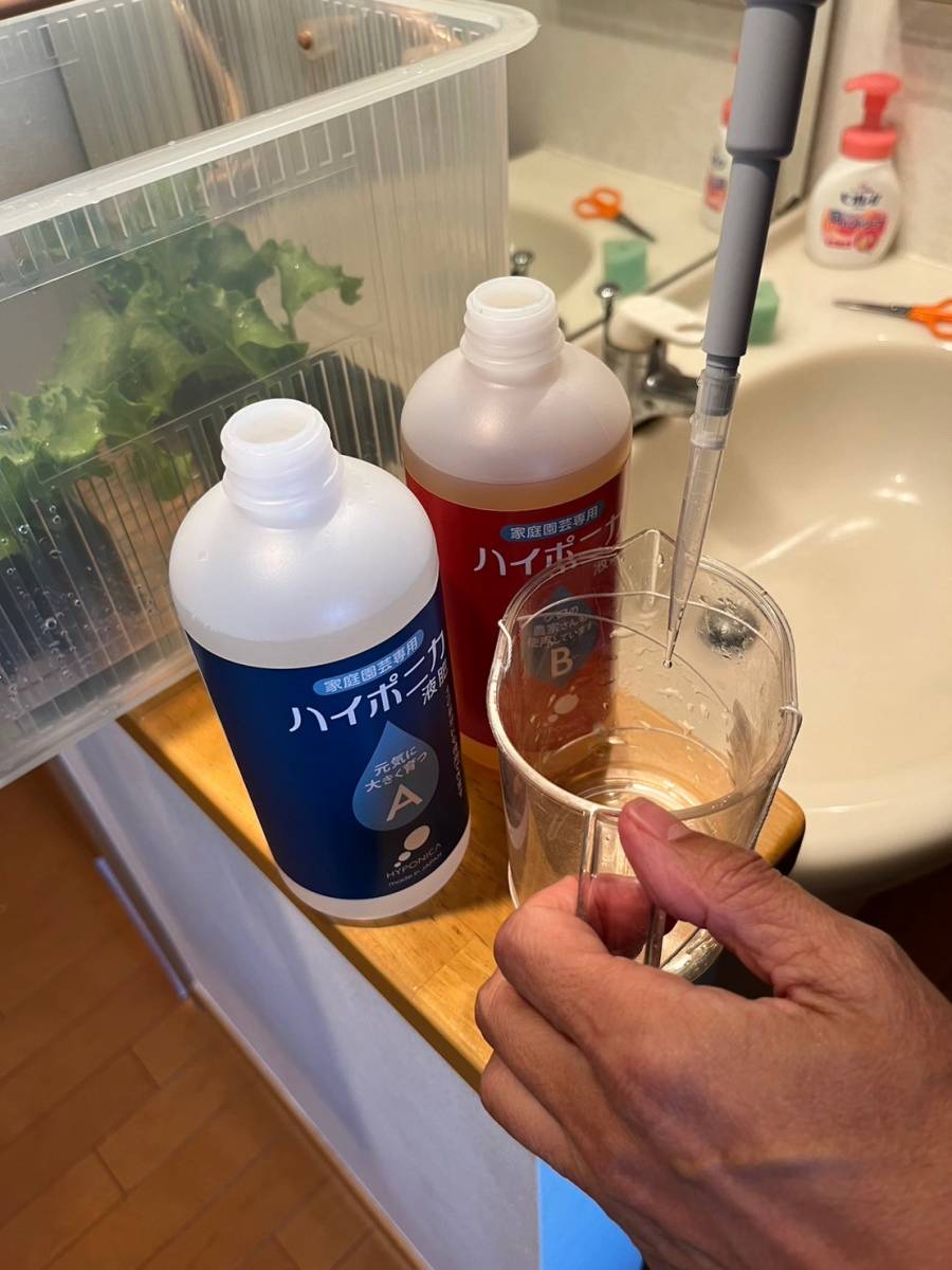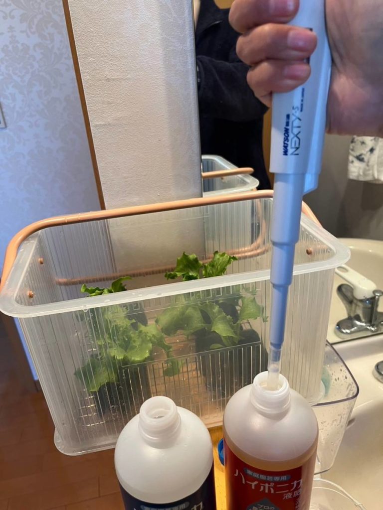 大は小を兼ねるので一気に大きい容器にすることもできますが、そうすると必要な水量が増えその分栄養剤も多く必要になるため、成長にあわせサイズを変えます。