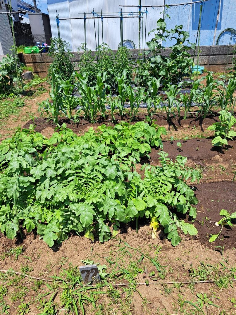 ツルなしインゲンに手作り支柱を取り付けした以外に大きなトピックはなく通常の畑作業をしておりました。