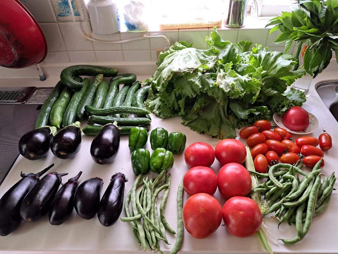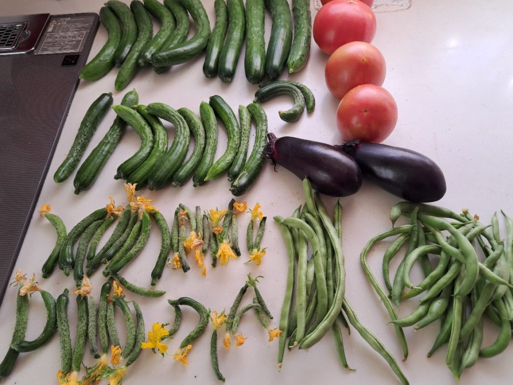 明日から私が再び長期不在となるため、再度花と赤ちゃんキュウリの摘み取りをしました。