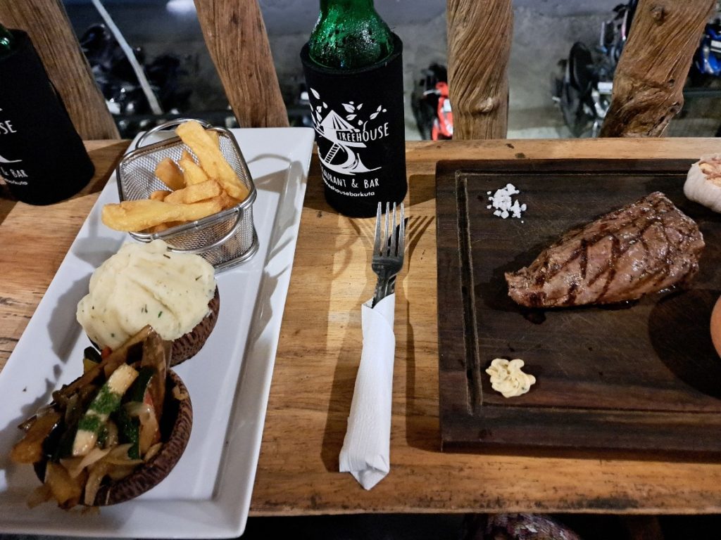 到着直後の疲れとりにマッサージ1時間コースを受け、夕食はステーキディナーです。