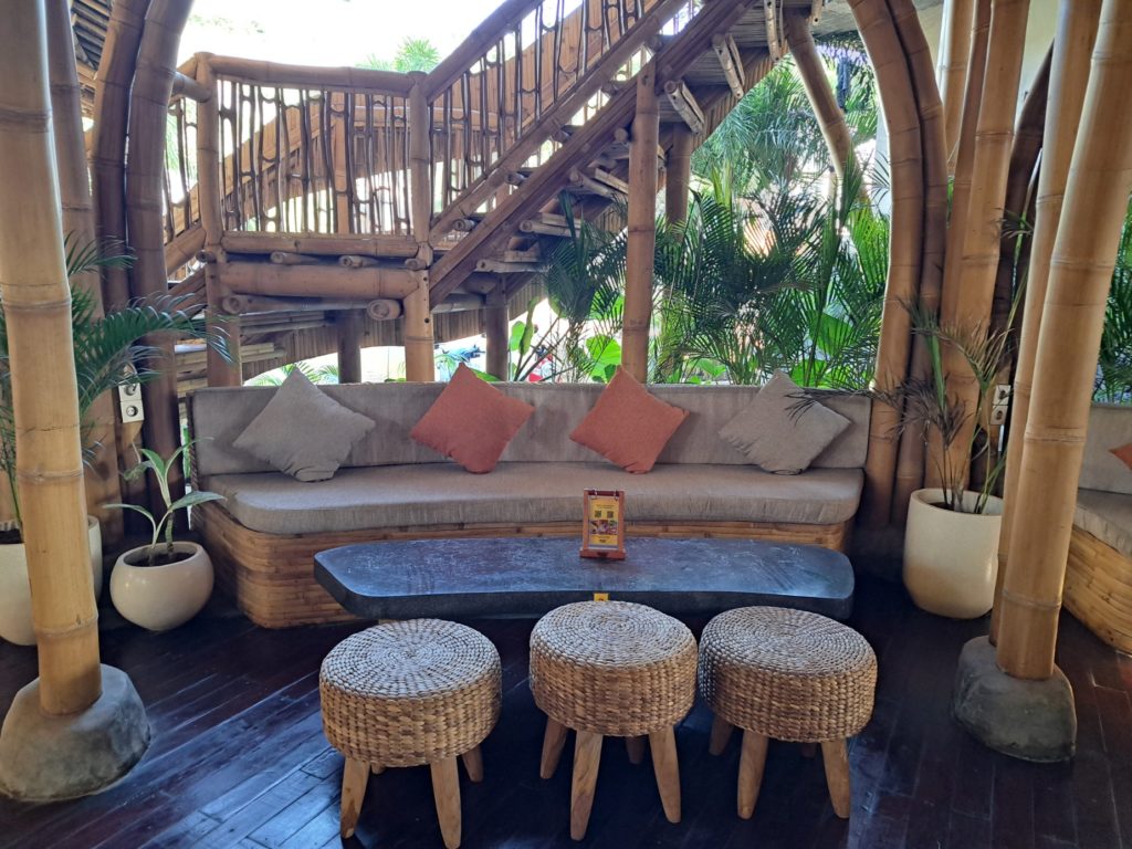 外観は素敵なBamboo建築、店内には心地よい音楽が流れ雰囲気がとてもいいです。
