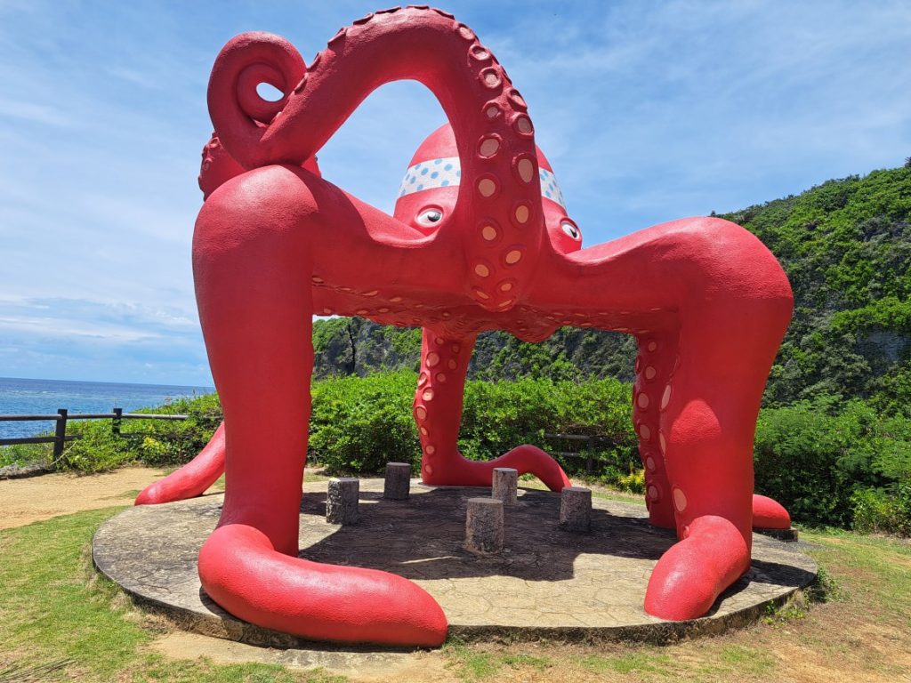 いきなりのタコに驚いたかもしれませんが、次なるポイント来間島のタコ公園に到着しました。