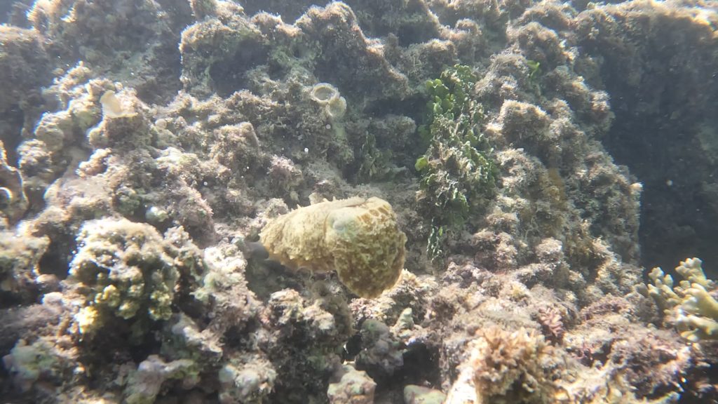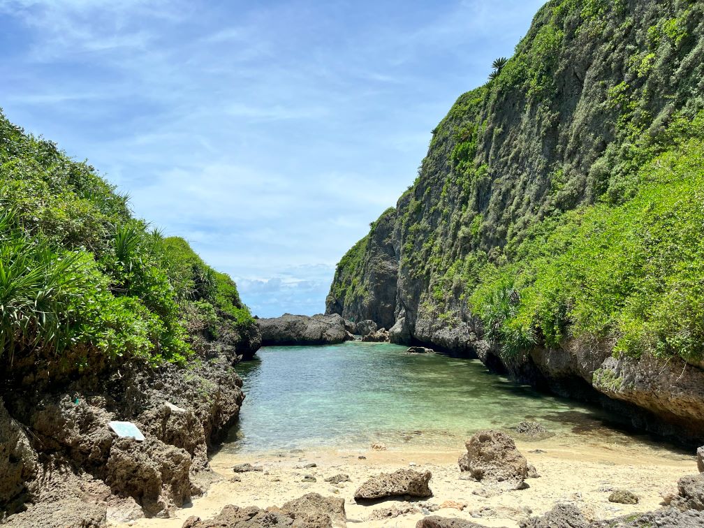 宿オーナーいわく、宮古島にはそこら中に名前のないビーチがあって、地元民は車を路駐しては獣道を入り込み、とりあえず飛び込んでみるそうです。すると思いがけず珊瑚礁が元気で魚もいっぱいいたりで誰も知らない秘密ポイントとなるようです。