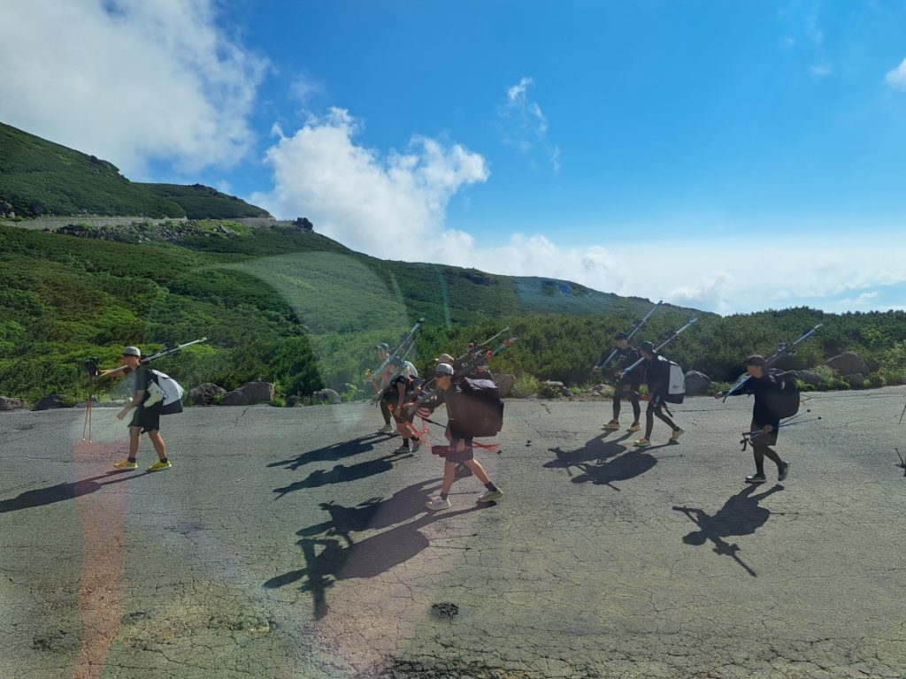 登山慣れしていない団体で、ガレ場の下りは恐怖心から超スローペースとなり、想定外の時間がかかりました。