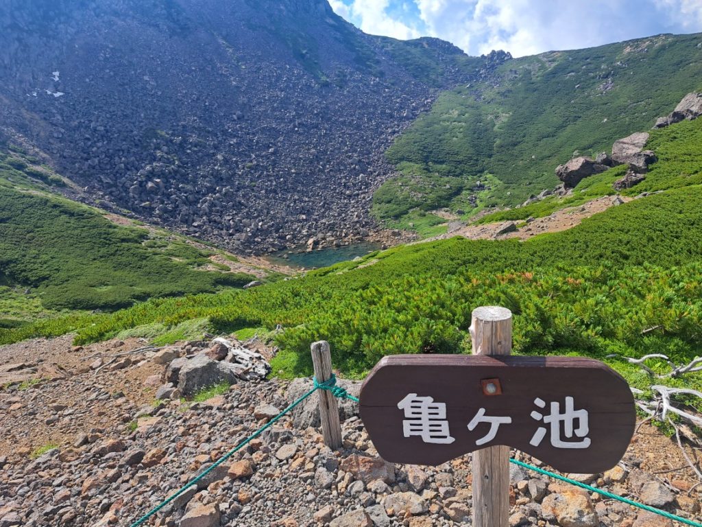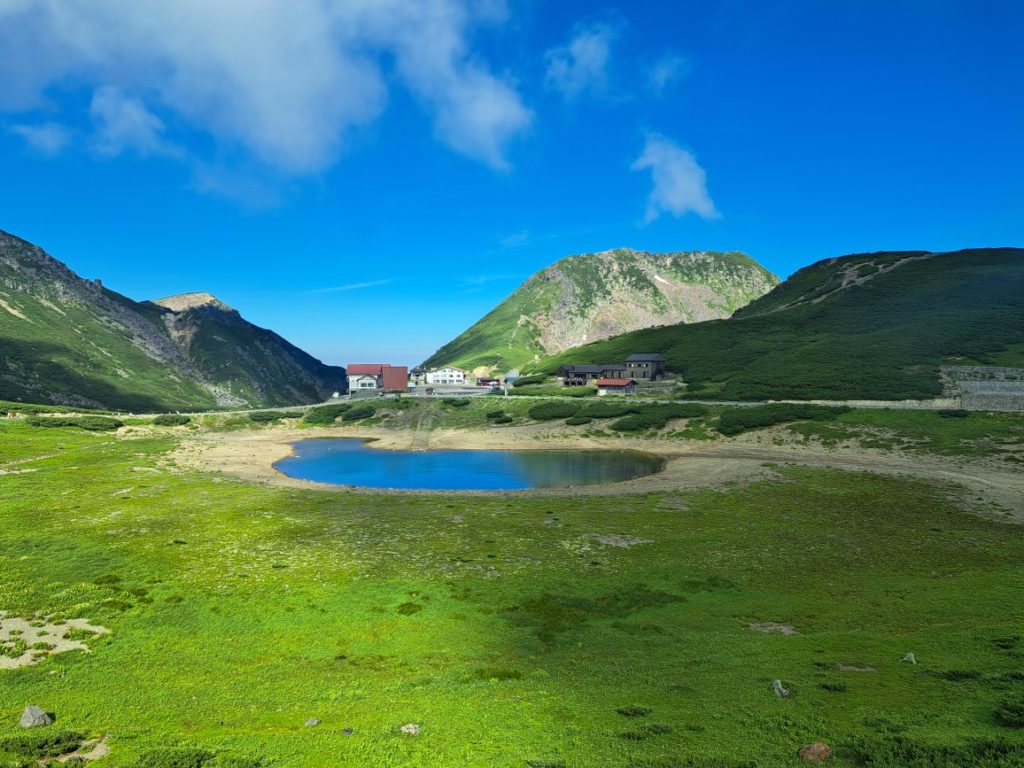 途中で見た不消池のエメラルドグリーンっぷりに感動。