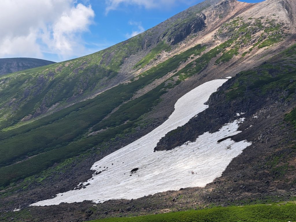 ※後ほど、乗鞍岳への登山道から雪渓でスキーをしている人たちを発見、その数20人位?恐るべし…