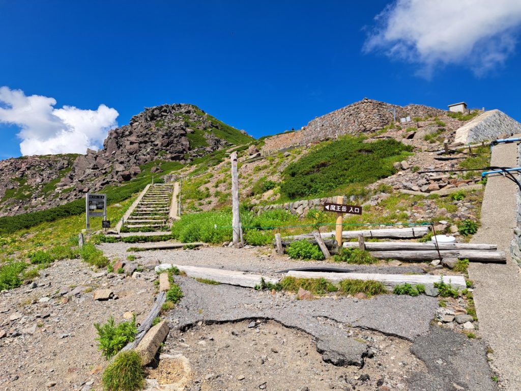 予約したバスの出発まで1時間半程度あり、余力もあったので、畳平から往復30分程度の魔王岳に登ってみることに…
