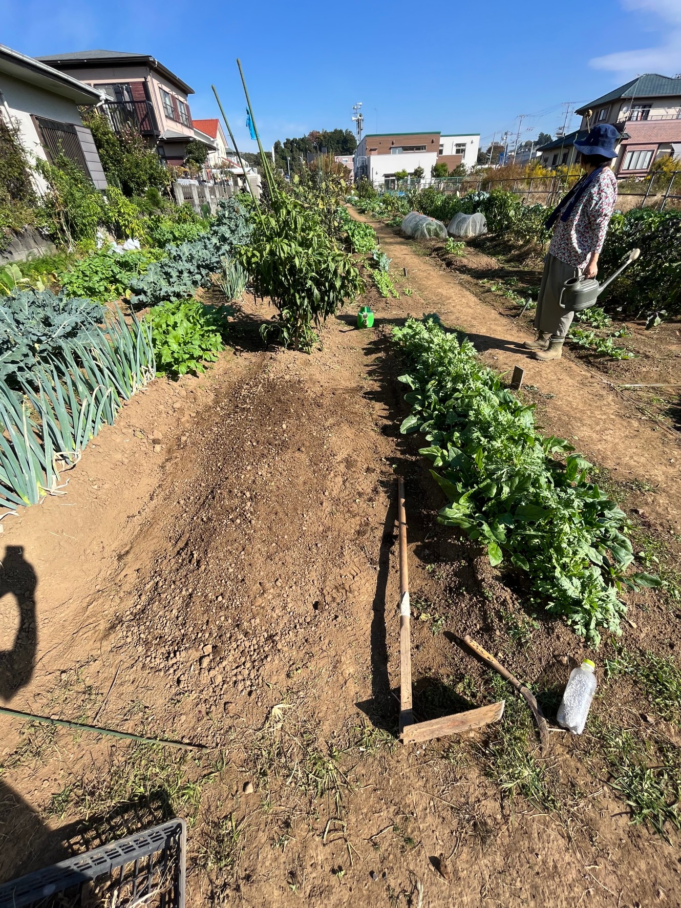 最近の畑(2023年10月16日) 公開日:2023年10月24日 1.体験農園全体園芸 最近の畑の様子です。1番手前の畝はトマトとキュウリの畝でしたが、夏の終わりとともに片付けられ今は青菜が植えられています。今年は残暑も厳しかった影響で発芽率が皆悪かったようですが、他の方より1週間遅くまいた私たちの畝はまず […] 続きを読む